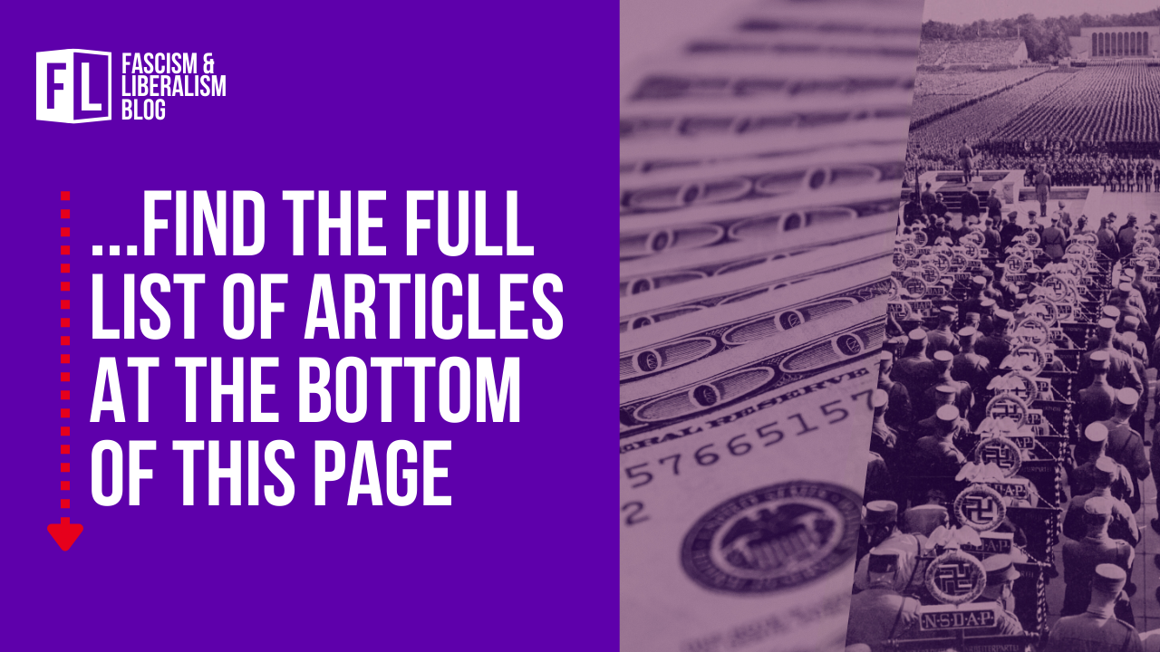 The Fascism and Liberalism Blog investigates this relationship of fascism and economic liberalism yesterday, e.g. in the 1920s and 1930s, and today. Central questions that we want to discuss are: How do the intellectual foundations of (neo)liberalism relate to fascism? What are commonalities and differences of fascism and current forms of reactionary right-wing movements? And, in the words of Karl Polanyi, is the rise of current far-right movements again “made practically unavoidable by the liberals’ obstruction of any reform involving planning, regulation, or control”?